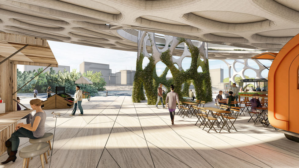 The underside of the Hill will serve as a Farmers Market. San Jose is within close proximity to one of the worlds great agricultural regions. By creating a covered central market “The Hill” helps draw attention to and celebrate local produce and the unique culture of the surrounding area. Throughout history food and markets have been great places for the exchange of culture and new ideas. The market component of “The Hill” will ensure it is a hub of activity and alive with the sounds a smells of many cultures.